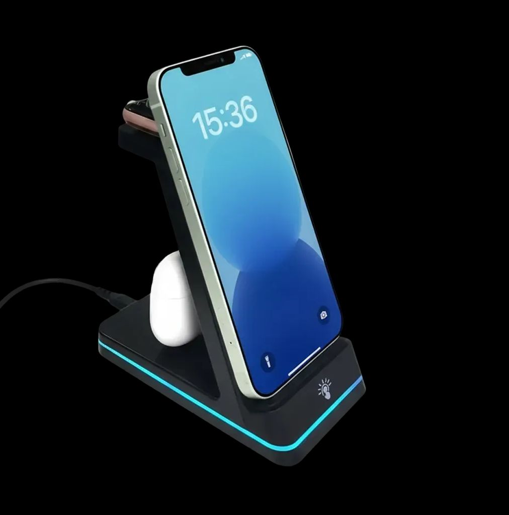 Legen Sie Ihr Gerät einfach auf das Qi-Pad und platzieren Sie Ihre AirPods und Ihre Apple Watch auf ihren jeweiligen Ladestationen, und genießen Sie kabelloses Laden ohne lästige Kabel.